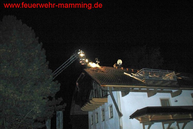 Noch auf der Anfahrt lies der ortsansässige Kommandant aufgrund offenem Feuer aus dem Dachstuhl die Alarmstufe von B 3 auf B 4 erhöhen.