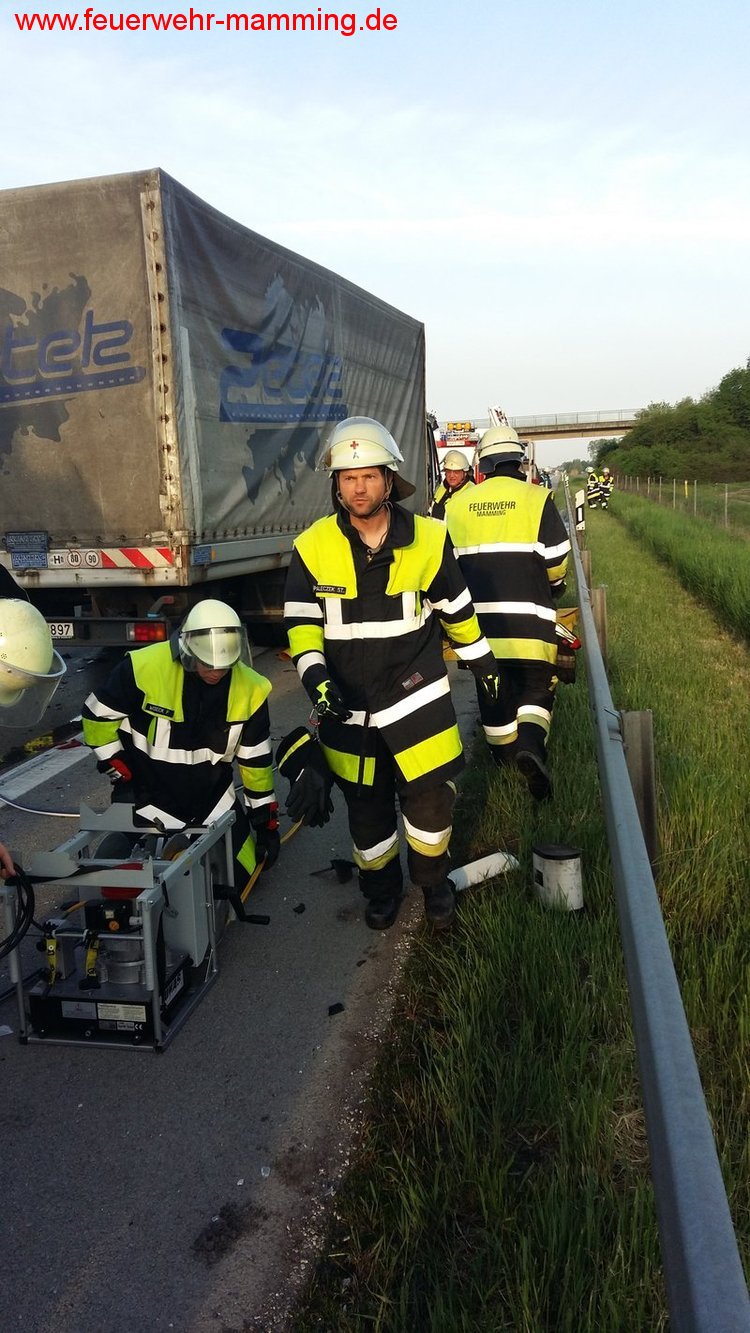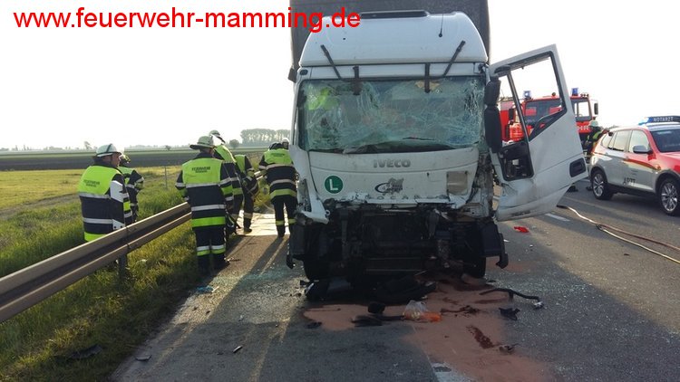 Ein LKW - Fahrer fuhr auf einen am Stauende stehenen Sattelzug auf und war in seinem Fahrzeug eingeklemmt.