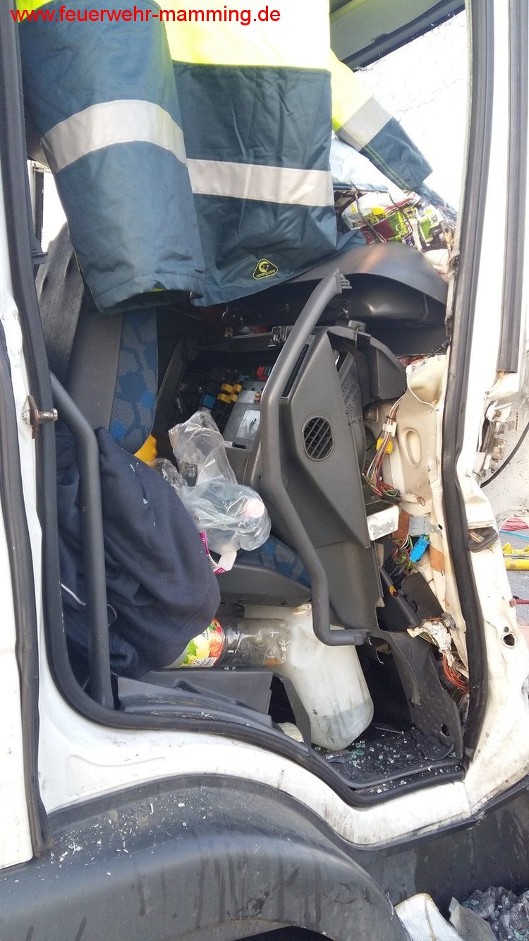 Mittels schwerem Rettungsgerät wurde der LKW - Fahrer innerhalb kurzer Zeit befreit und dem Rettungsdienst übergeben.