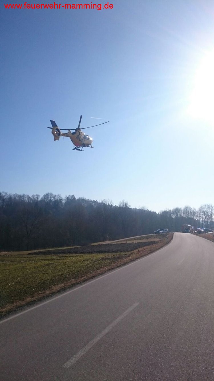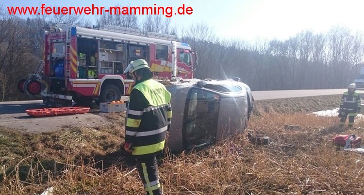 Alarm für die Feuerwehren Mamming und Landau zu einem Verkehrsunfall mit eingeklemmter Person.