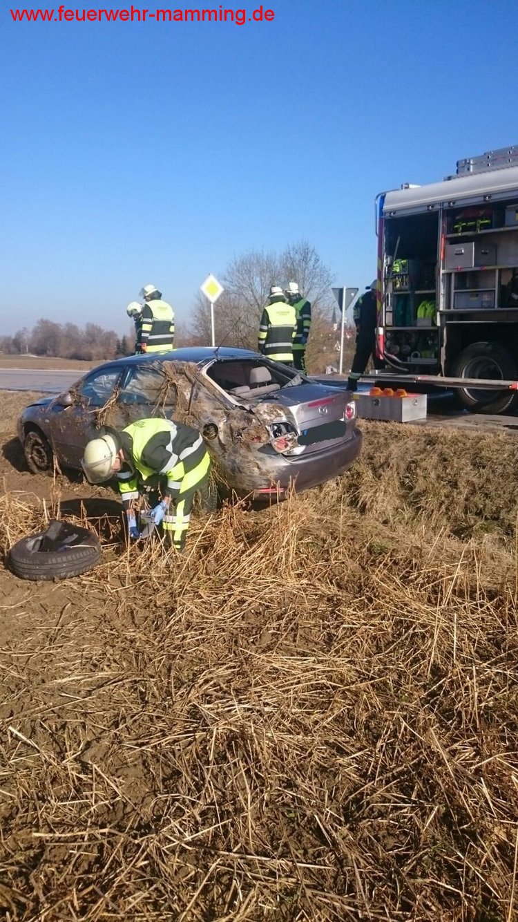 Innerhalb kürzester Zeit konnte die Feuerwehr Mamming beide Insassen aus dem Fahrzeug befreien und bis zum Eintreffen des Rettungsdienstes betreuen.