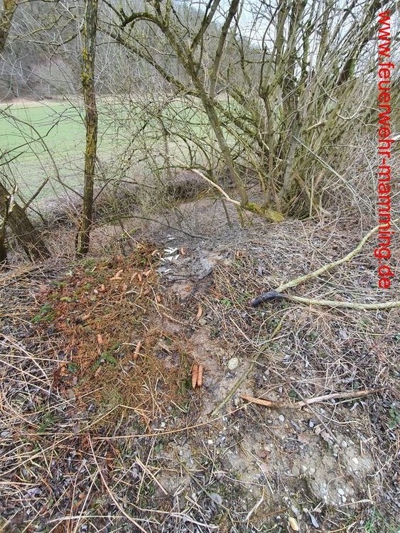 Kleinbrand im Freien - nachdem augenscheinlich Asche an einem Feldweg entsorgt wurde, geriet ca. 1 m² der Böschung in Brand