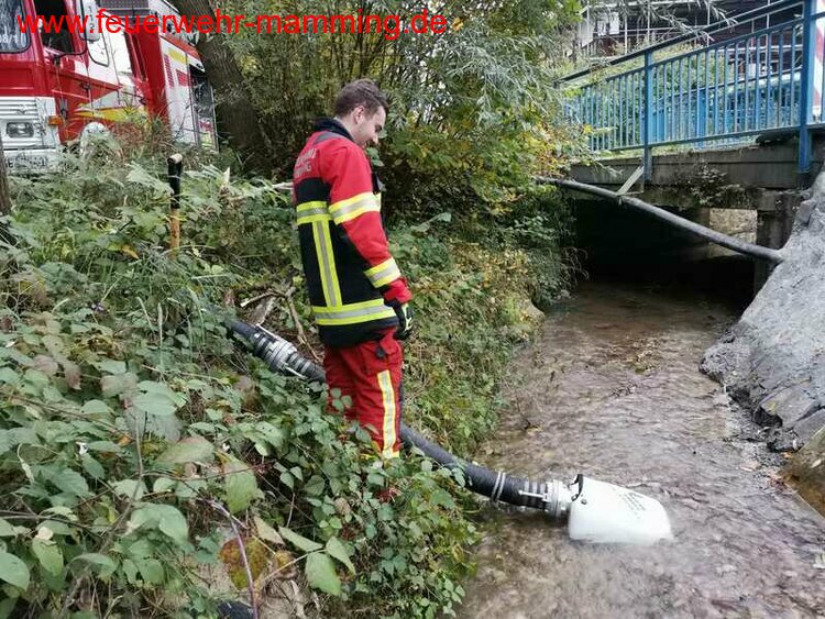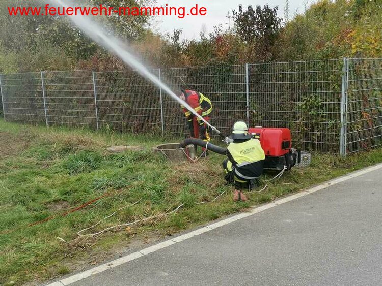 Praktische Versuche der Löschwasserförderung anhand mehrerer Einsatzszenarien, u.a. an seichten Wasserquellen.