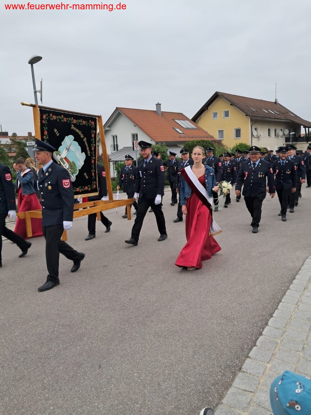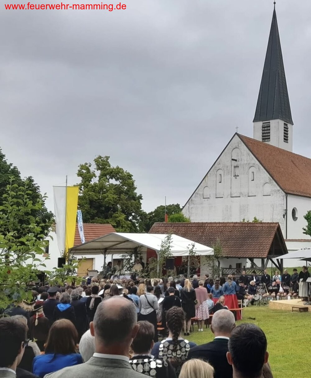 | Details: | Am Sonntag klingelte der Wecker bereits für alle schon sehr früh, egal ob man zum Frisör musste oder schon zum Weckruf beim Apfelbeck erscheinen soll. Als derJubelverein ins Festzelt einzog, herrschte bereits beste Stimmung und es wurde ausgelassen auf den Bänken getanzt. In 6 Zügen wurde dann zum Kirchenzug aufgestellt. ein Atemberaubendes Bild aus allen Verein von nah und fern. Trotz des durchwachsenen Wetters, ließ man sich die gute Laune nicht verderben. Die Kirche im Freien war umringt von vielen Fahnen und Vereinsabordnungen. Als der Festzug durch Mamming zog, war das ganze Dorf dabei und jubelte allein Vereinen zu.