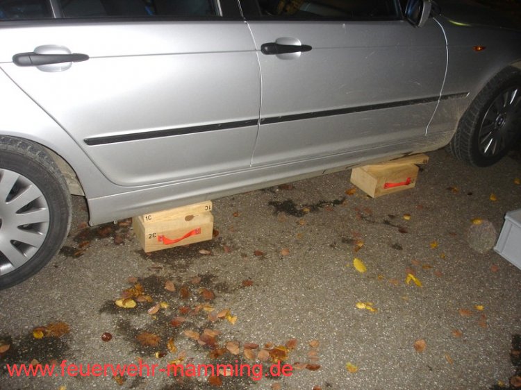 | Rückschau: | Unterbau mit dem neuen Rüstholz an einen Fahrzeug und Aufbau wie bei einen PKW Unfall. |